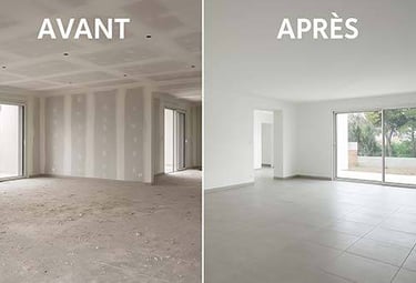 Élimination des poussières fines, traces de peinture et résidus de chantier. Votre logement retrouve un état impeccable, prêt à être habité ou loué.